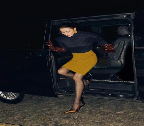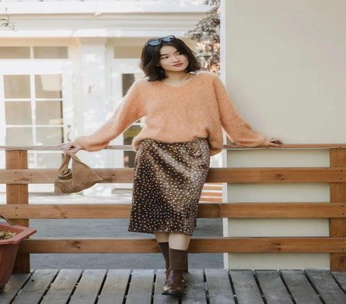 达妹也穿过类似的搭配:棕色麂皮外套+橙色缎面连衣裙,明媚得让人眼前一亮。▼