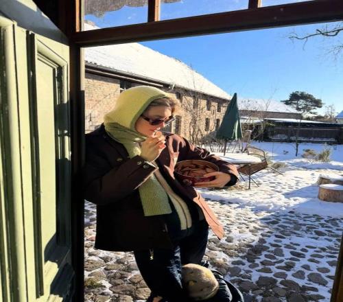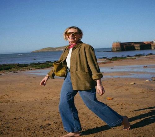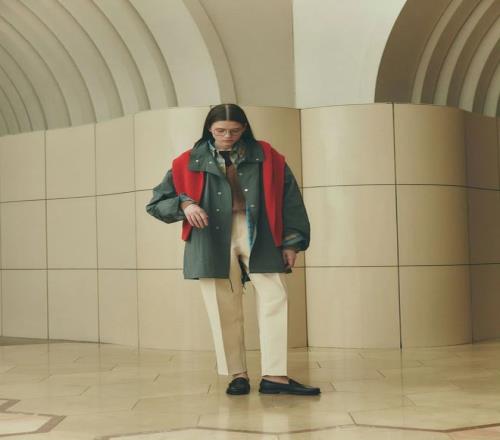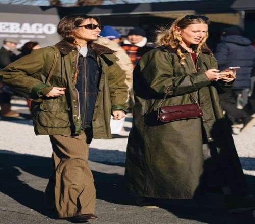 或者用这两年很火的Barbour油蜡皮谷仓夹克,搭配红色针织,形成“一刚一柔”的对比。▼