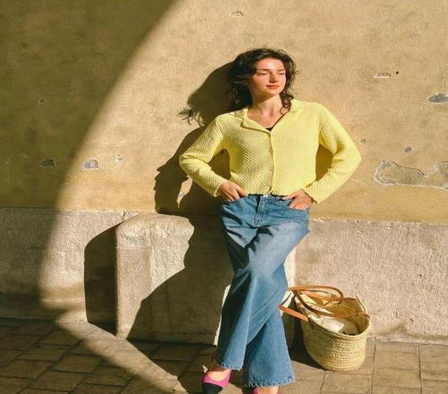 博主charlotte.vandaele的黄色马甲+蓝色衬衫▼