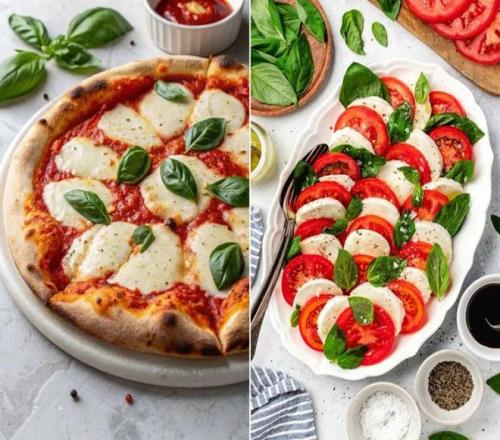 当然,意大利的美食也少不了这对CP:最经典的玛格丽特披萨(左)、卡布里沙拉(右),也有红绿配。▼
