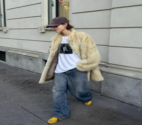 下装简单配条牛仔裤,就可以快速搞定“黄蓝配”。 ▼
