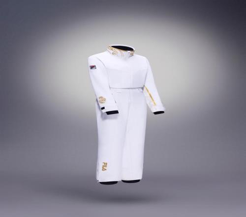 “高空翻转后背部、大腿极寒”是运动员长期反馈的核心痛点,也是全新FILA 4810凌峰科技比赛服研发的重点攻关方向。因此,设计团队在比赛服中引入“暖动分区”设计,在胸部、背部及大腿等核心区域填充航天级AEROWARM静电纺PI棉,并以纳米纺丝工艺与航天级隔热材料复合,实现定向锁温。同等厚度下,这一设计保暖效率优于传统P棉,单件减重139克。在-10℃低温模拟测试中,运动员体感温度可有效提升约2.4℃。
