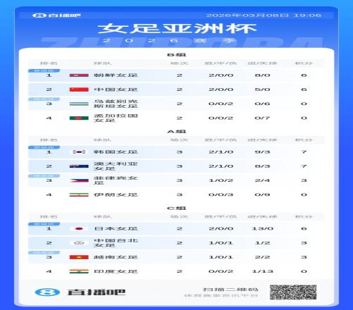 体育播报03月08日宣 女足亚洲杯小组赛B组收官战,中国女足vs朝鲜女足将在3月9日17点打响。这场比赛不仅关乎小组头名归属,也将直接决定中国女足后续的淘汰赛路径。