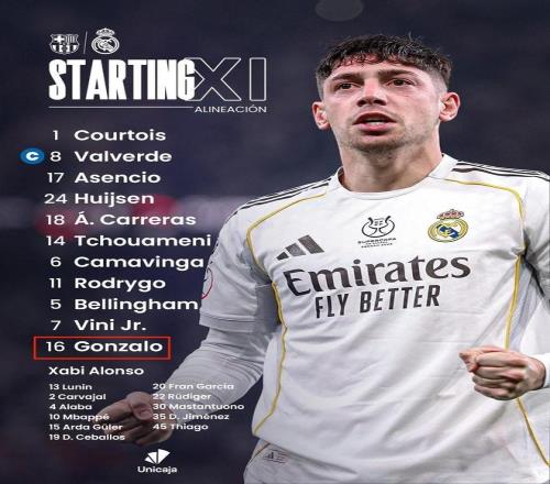 西超杯决赛,皇家马德里对阵巴塞罗那,赛前,皇马公布首发名单疑似出错,一开始是居莱尔首发,随后改成了贡萨洛-加西亚首发的正确版本。