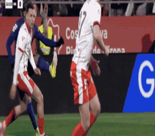 第24分钟,拉菲尼亚接球后的停顿搅乱了赫罗纳的防守,费兰·托雷斯兜射远角,皮球稍稍偏出。