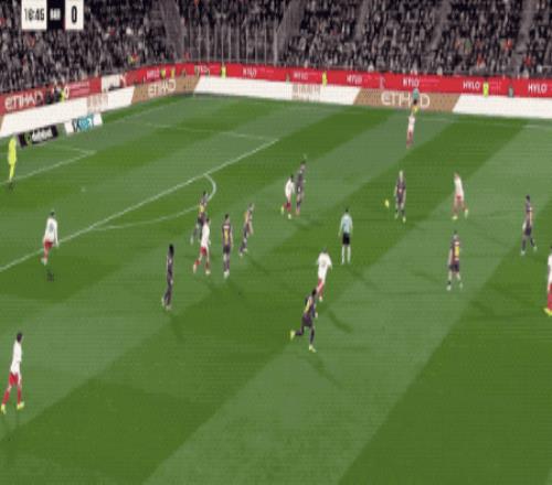 第16分钟,奥尔莫送出传球,亚马尔的停球足够舒服,快速突破形成单刀,但最后的射门被加扎尼加扑了出来。