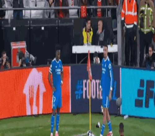 伤停补时一度来到102分钟,维尼修斯在主罚角球时,疑似被球迷抛掷的物品击中。