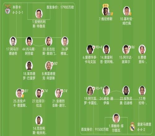 比赛开始后,双方攻防胶着,本菲卡依托主场气势十足,高位逼抢动作不小,皇马稳守阵型寻找机会。姆巴佩多次冲击对方防线未果,维尼修斯被重点盯防。上半场战罢,两队半场互交白卷。