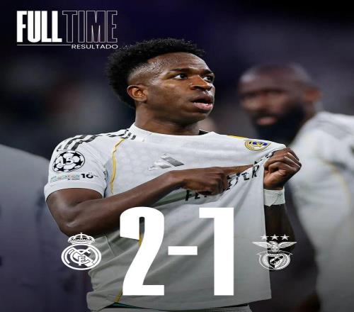 比赛结束,皇家马德里击败本菲卡晋级本季欧冠淘汰赛