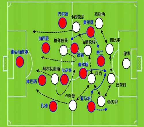 奥尔莫作为前腰、佩德里在中场,卡萨多或者博纳尔作为后腰,最大程度保证中场站位的合理性,到下半场上费尔明增加冲击力和远射。