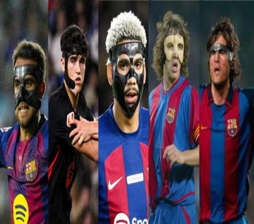 以下是其他曾佩戴面具出战的巴萨球员:埃里克-加西亚去年11月对阵布鲁日时鼻骨骨折,此后近两个月时间里都戴着面具比赛,直到对阵阿尔瓦塞特时才摘掉护具。
