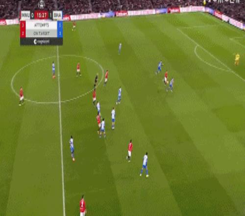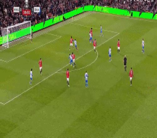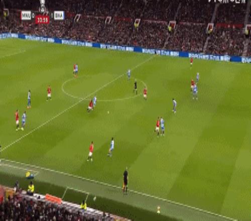 第85分钟,B费角球开出,谢什科头球破门,曼联1-2布莱顿