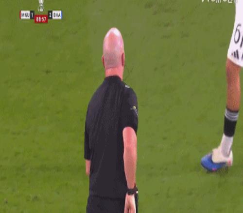第54分钟,多古放倒格鲁达,从示意犯规