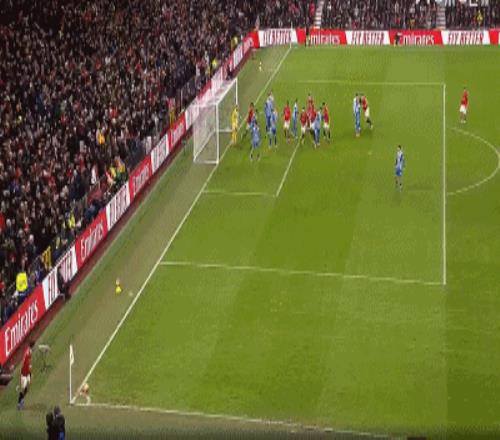 第42分钟,B费任意球贴地斩,皮球偏出球门