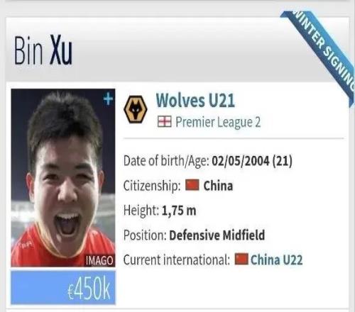 偶像卡塞米罗!英媒确认:狼队签下中国球员徐彬或将租借英冠