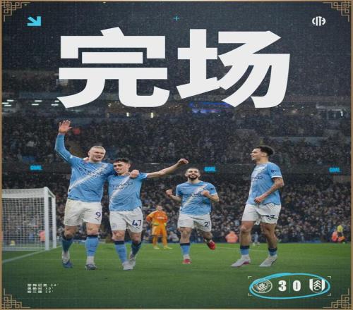 英超第26轮,伊蒂哈德球场,比分定格在3-0