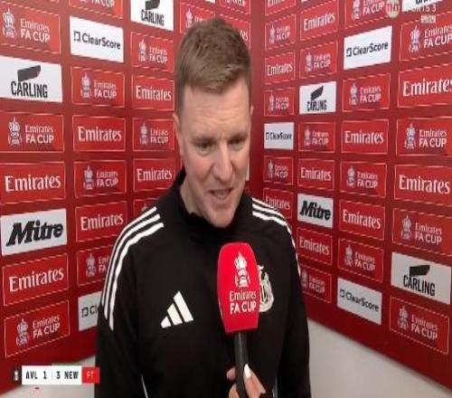 足总杯第4轮,纽卡客场3-1战胜维拉,纽卡主帅埃迪-豪赛后接受了TNT体育的采访。