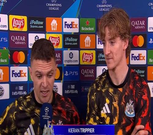 在客场6-1战胜卡拉巴赫的赛后,纽卡后卫特里皮尔和本场比赛上演大四喜的戈登接受了CBS体育的采访。在采访中,他们谈到了因抢罚点球发生争执一事。
