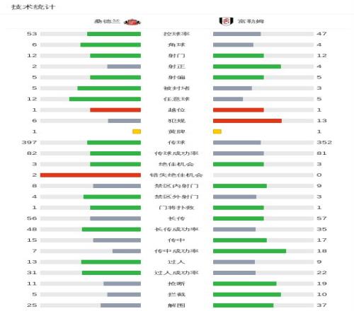 第54分钟,劳尔-希门尼斯头球破门,富勒姆客场1-0领先桑德兰