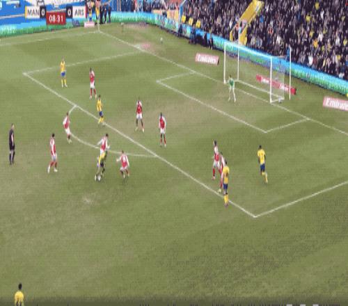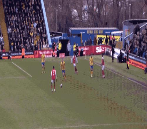 稳住阵脚后,阿森纳开始控制局面,利用娴熟的传控球撕扯曼斯菲尔德的防线。第20分钟,特罗萨德卯足全力的射门,放了高射炮。