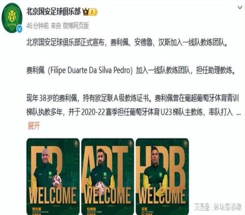【官宣】费利佩、安德鲁、汉斯加入北京国安教练组