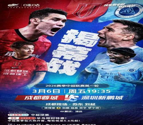 3月6日19点35分,2026赛季中超联赛揭幕战将在成都点燃战火,主场作战的成都蓉城将与深圳新鹏城碰面,正式揭开新赛季的序幕。