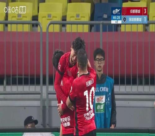 第31分钟,罗慕洛横传打穿深圳新鹏城防线,费利佩抢点破门帮助成都蓉城2-1反超比分。补时阶段,王东升助攻胡荷韬再入一球,成都蓉城半场3-1取得领先。